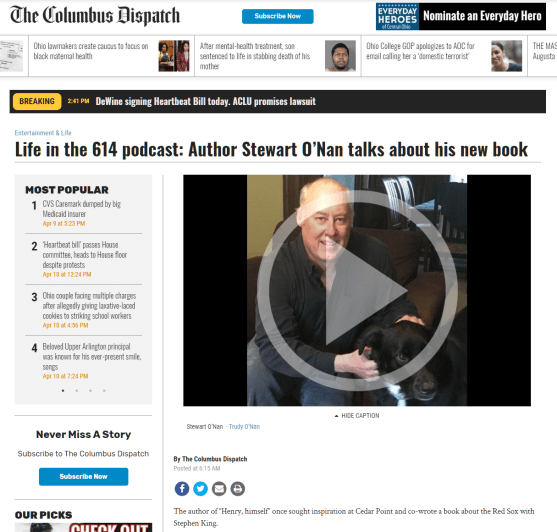 Life in the 614 podcast: Author Stewart O’Nan talks about his new book Posted on April 11, 2019 by SJW Listen Stewart talk about Henry, Himself at the Life in the 614 podcast from The Columbus Dispatch. [download MP3] Share this: Click to email a link to a friend (Opens in new window) Email Click to print (Opens in new window) Print Click to share on Facebook (Opens in new window) Facebook Click to share on Reddit (Opens in new window) Reddit Click to share on X (Opens in new window) X Like Loading... Related